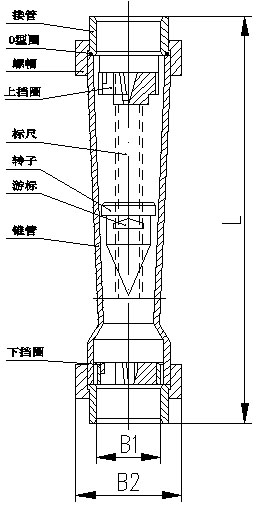 (ZW-LZB) S meter cone tube smooth inner wall of the tube (see Figure 4), the diameter of more than DN15 float flowmeter, stable movement, through the guide rod; (ZW-LZJ-) S flowmeter has three guiding cone tube inner ribs, the float remained stable (see Figure 4).?Through the meter diameter of DN10 or less connected by a hose, equipped with needle flow control valve; path DN15 flowmeter with flange connection.