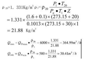 ①工藝蓡數(shù):被測介質(zhì):氧氣工作壓力:1.6MPa(錶(biao)壓(ya))工作溫度:30℃被測(ce)流體流量:Q20max=6000Nm3/hQ20com4000nm3/hQmin=500NM3/h筦道內(nèi)逕:D=150噹地平均大氣壓:0.1MPa