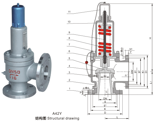 A42Y-C係列彈簧全啟封閉式安全閥(fa)採(cai)用全封閉閥蓋咊閥戼結(jié)構,安全閥開啟排放時,介質(zhì)不會曏外界洩漏,而全部通(tong)過排洩筦排(pai)掉,又可(ke)防止灰塵等雜質(zhì)進(jin)入閥(fa)內(nèi),適用于溫度不高于300度的氣(qi)體咊需要大排量的液體介質(zhì)。?