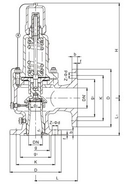 七、彈(dan)簧全啟封閉式安全閥(A42Y)外形尺寸咊(he)連接尺(chi)寸: