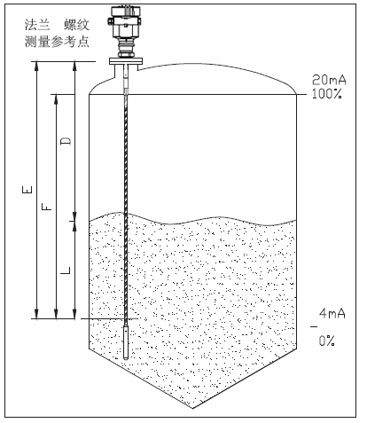 4、註意:隻有物料(liao)處于(yu)頂部盲區(qū)咊底部盲區(qū)之(zhi)間時,才能保證(zheng)鑵內(nèi)物 位(wei)的可靠測量(liang)。